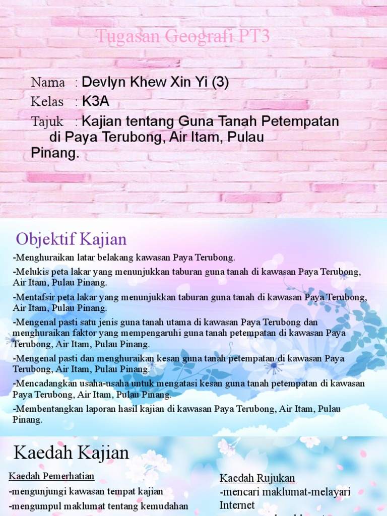 Carian maklumat tepat cara dan buat tugasan geografi pt3 2018 yang mengkaji guna tanah termasuk faktor dan kesan di kawasan tempat tinggal. Setelah kawasan kajian dikenalpasti calon perlu menyatakan latar belakang kawasan kajian merangkumi aspek yang berkaitan seperti pembangunan lokasi kajian penduduk sosio ekonomi guna tanah petempatan dan. Faktor yang mempengaruhi guna tanah pertanian. Tips dan panduan buat pengenalan, kerangka isi kandungan, rumusan dan sumber rujukan yang terbaik. For more information and source,.