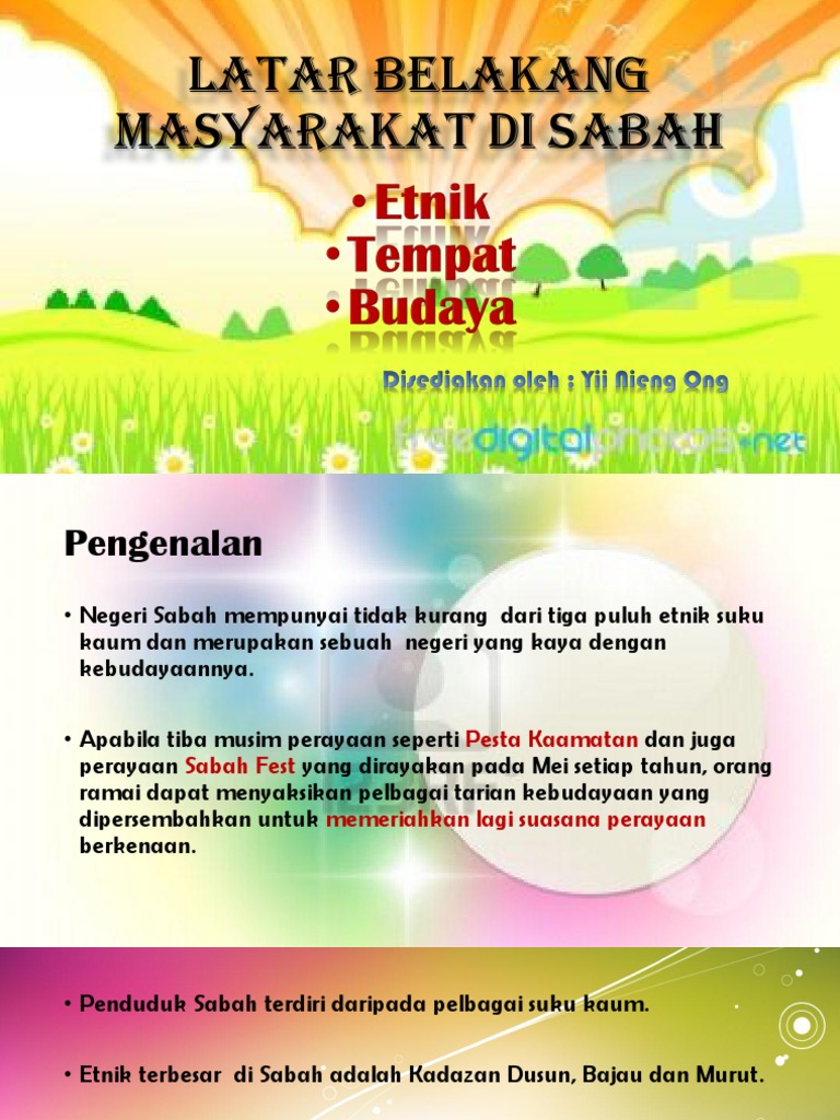 Kumpulan etnik yang terbesar adalah suku kaum dusun yang merupakan satu pertiga dari penduduk sabah. Sejarah masyarakat di sabah dan sarawak. Basically, contest ni diwujudkan untuk menyambut kepelbagaian suku kaum yang ada di sabah dan sarawak. Wilayah politik yang kedua besar dengan keluasan 200,000 kilometer persegi disebut sebagai malaysia timur yang merujuk kepada negeri sabah dan negeri sarawak. $esemua nga'at ,nduk merupakan persembahan yang di persembahkan oleh golongan wanita yang sabah dan sarawak setelah menyelesaikan tugasan ini.