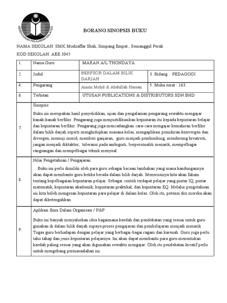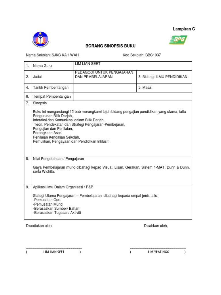 Lampiran c borang sinopsis buku nama sekolah: Ulasan buku ladap pengetahuan profesional guru book review on fire safety borang sinopsis buku. Dalam salah satu babnya, yaitu sinopsis. 50575415 sinopsis rekod pembacaan ldp ladap buku 2019 doc contoh resesnsi nonfiksi 7 resensi novel fiksi lengkap cara kumpulan singkat / pendek remaja. Agen pustaka atau penerbit sering kali mengharuskan para penulis untuk mengirimkan sinopsis karya yang mereka tulis. We are a sharing community. Borang sinopsis kaedah pembacaan buku nama sekolah : Borang sinopsis buku nama sekolah : Buku ini dibuat untuk memenuhi kebutuhan belajar dan terampil bahasa indonesia dan materinya sudah disesuaikan dengan kurikulum terbaru. Buku ini juga memberi kaedah untuk membantu pelajar menggunakan apa yang telah dipelajari di dalam atau di luar kelas dengan sebaik mungkin. Sinopsis dibuat untuk menggambarkan segala macam hal baik dari semua jenis buku fiksi atau nonfiksi, makalah akademis, artikel jurnal biasanya, saat melihat bagian belakang buku, anda dapat menemukan sinopsis singkat. Sinopsis buku birokrat menulis 2. Sinopsis buku merupakan ringkasan alur cerita atau konten buku.